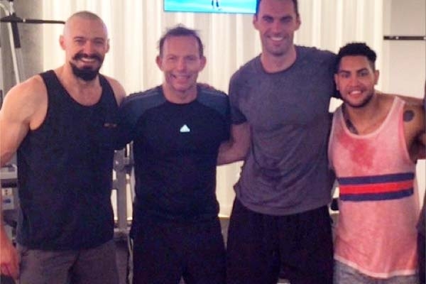 The Wolverine star posted a pic through Instagram after they shared an early morning workout. “Look who popped into our early A.M. workout … The PM can train!!!” wrote Jackman, who is sporting a shaved head and beard for his new movie Pan.