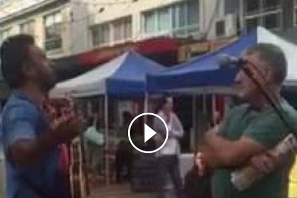 Crowd support built momentum with a couple of bystanders trying to move the pest on while others yelling their support for the musician who decided music was the answer where discourse had failed. Kelly proceeded to serenade the now-famous douchebag leaving him nowhere to go save a hasty solo exit stage left to the jeers of the assembled.