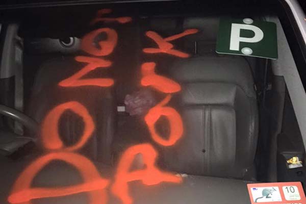 Someone's spray painted 'Do Not Park' on a car window in Melbourne and everyone reckons a staffer at a Melbourne Domino's Pizza dun it.